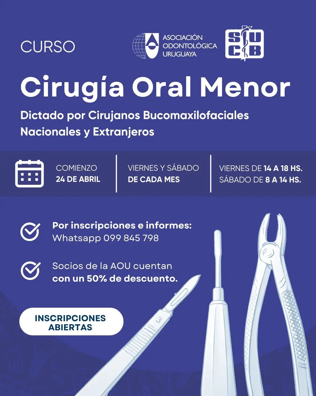 Capacitaciones 2026 Comienza Curso Cirugía Oral Menor (Docentes Directiva SCUBMF) Facebook Twitter Pinterest LinkedIn